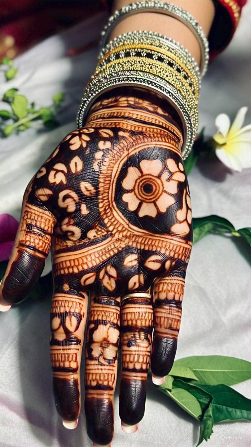 Mandalas are vivid. Their perpetual motion grants balance, depth, and symmetry making them ideal for engagement mehndi art for brides wanting a traditional touch.