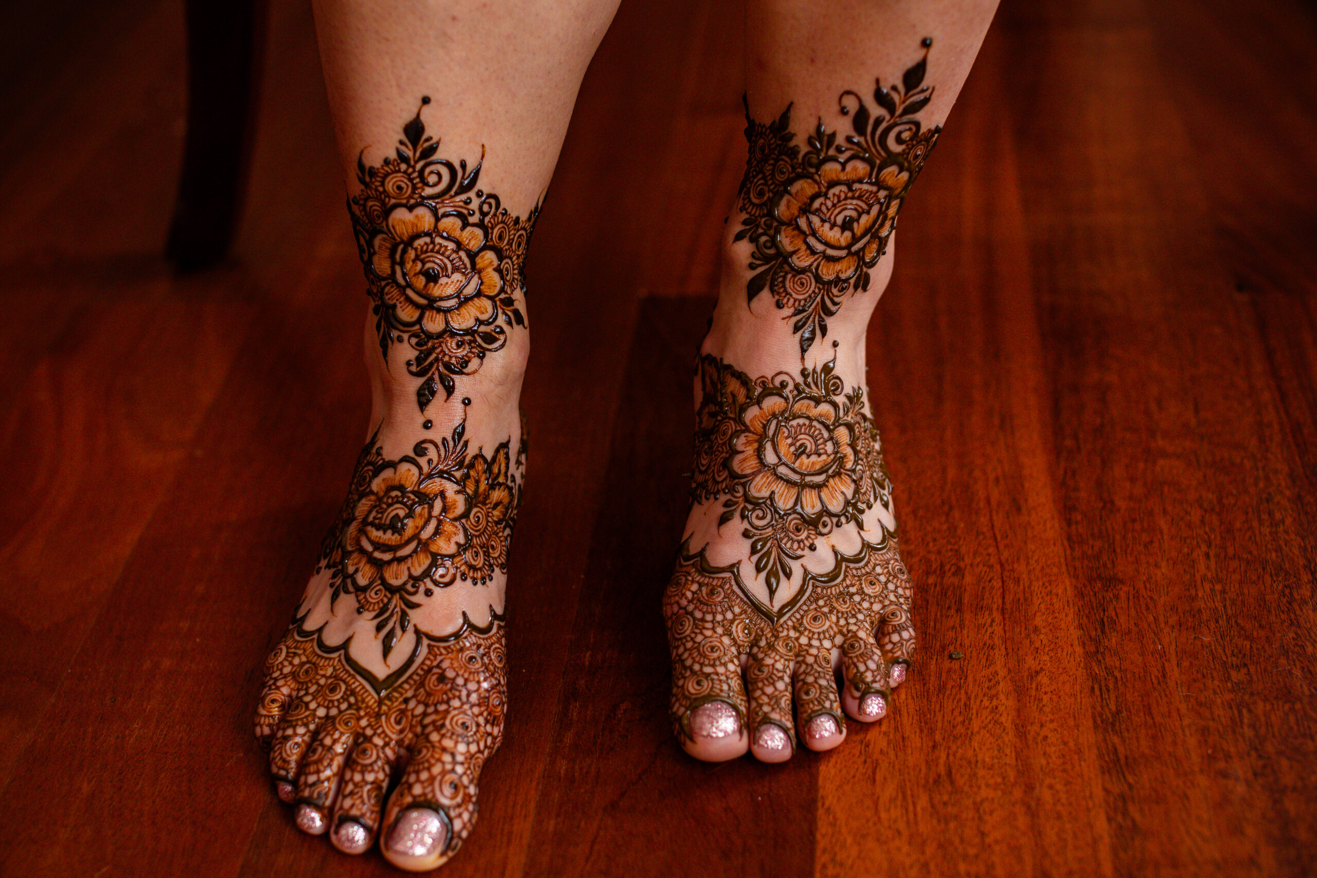 To be brides are accustomed to beautiful mehndi designs which start from the toes and go halfway up the leg. These patterns are filled with paisleys, flowers, and geometric shapes.