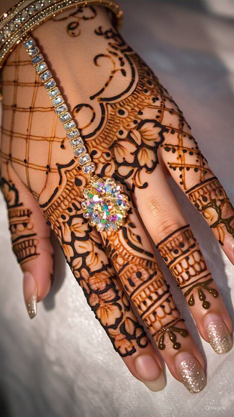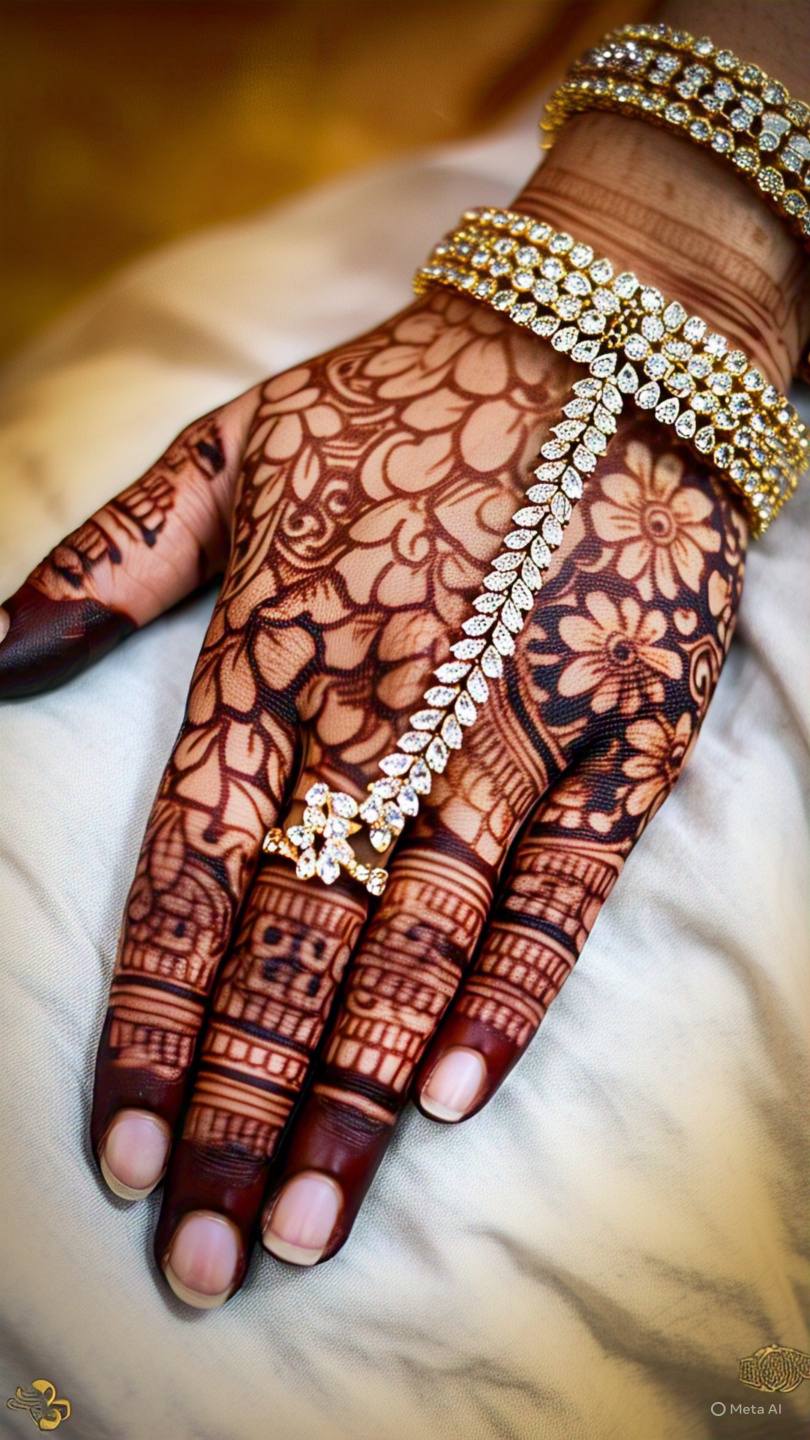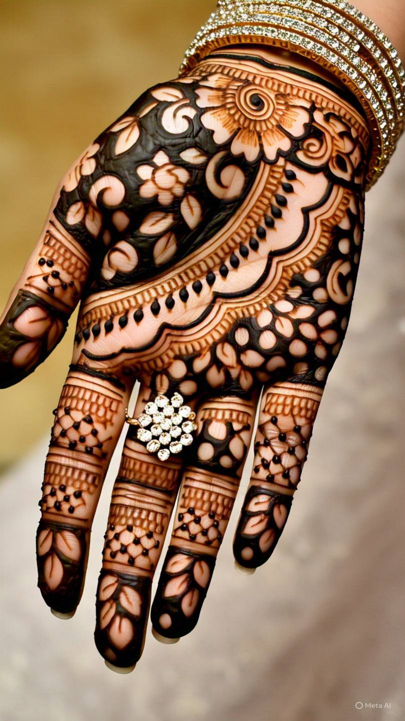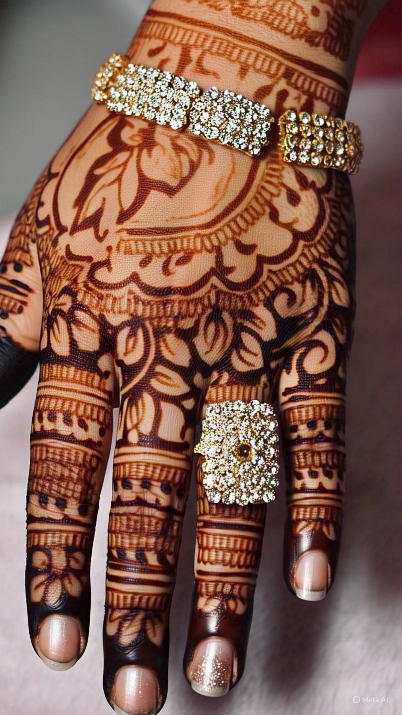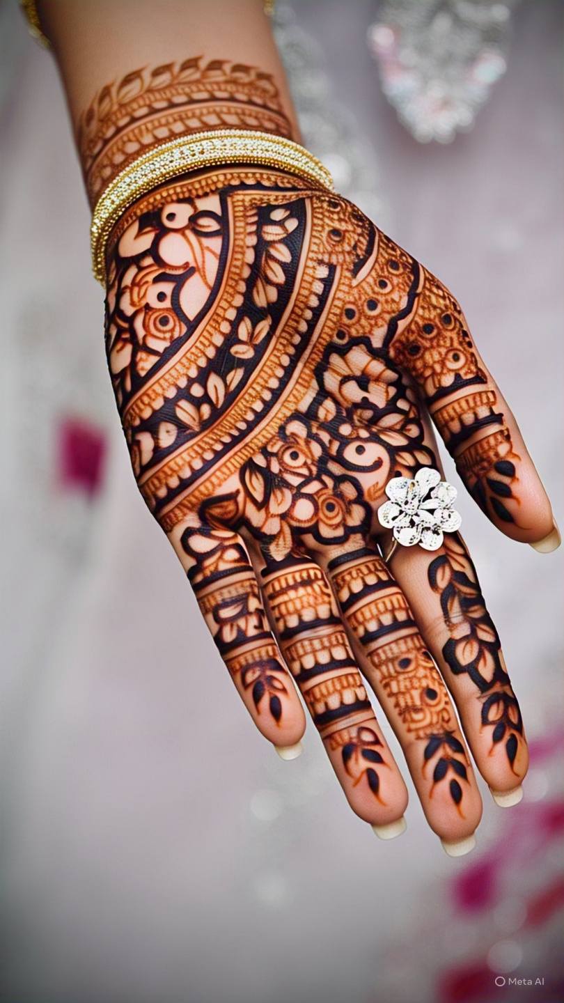 Mandala designs feature circular patterns that start from the center of the palm and expand outward. These symmetrical designs are not only aesthetically pleasing but also hold cultural significance in many traditions.