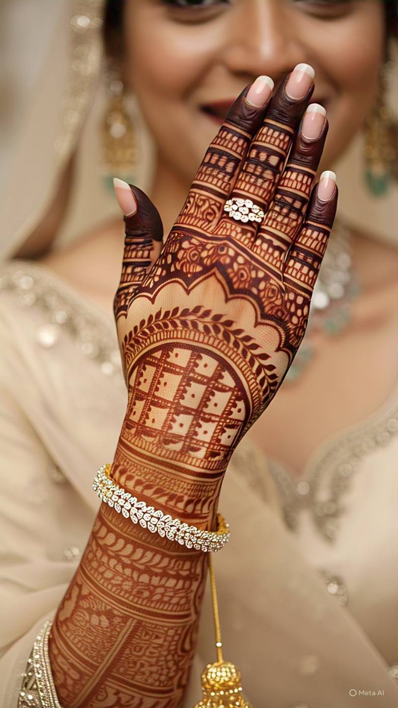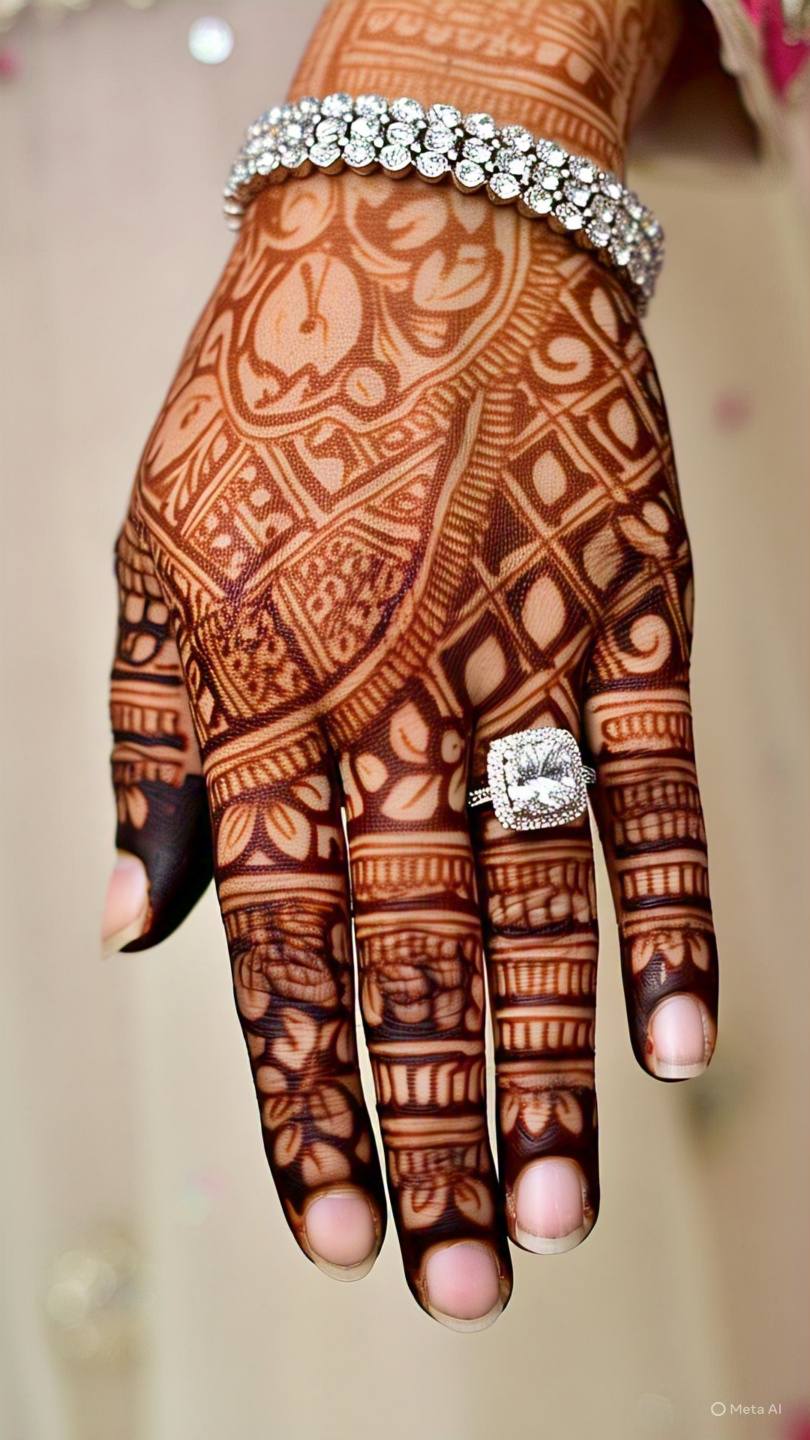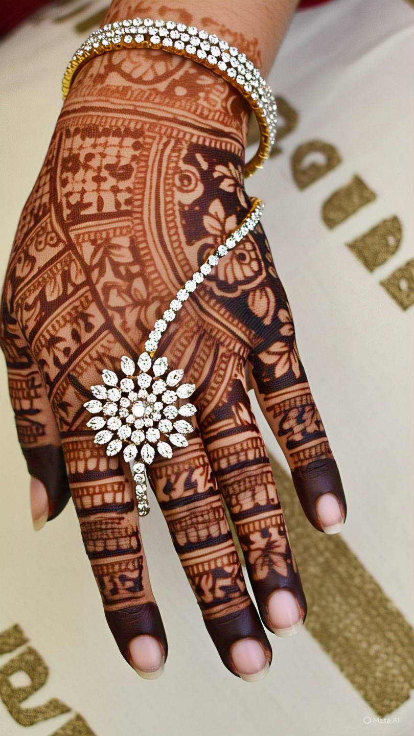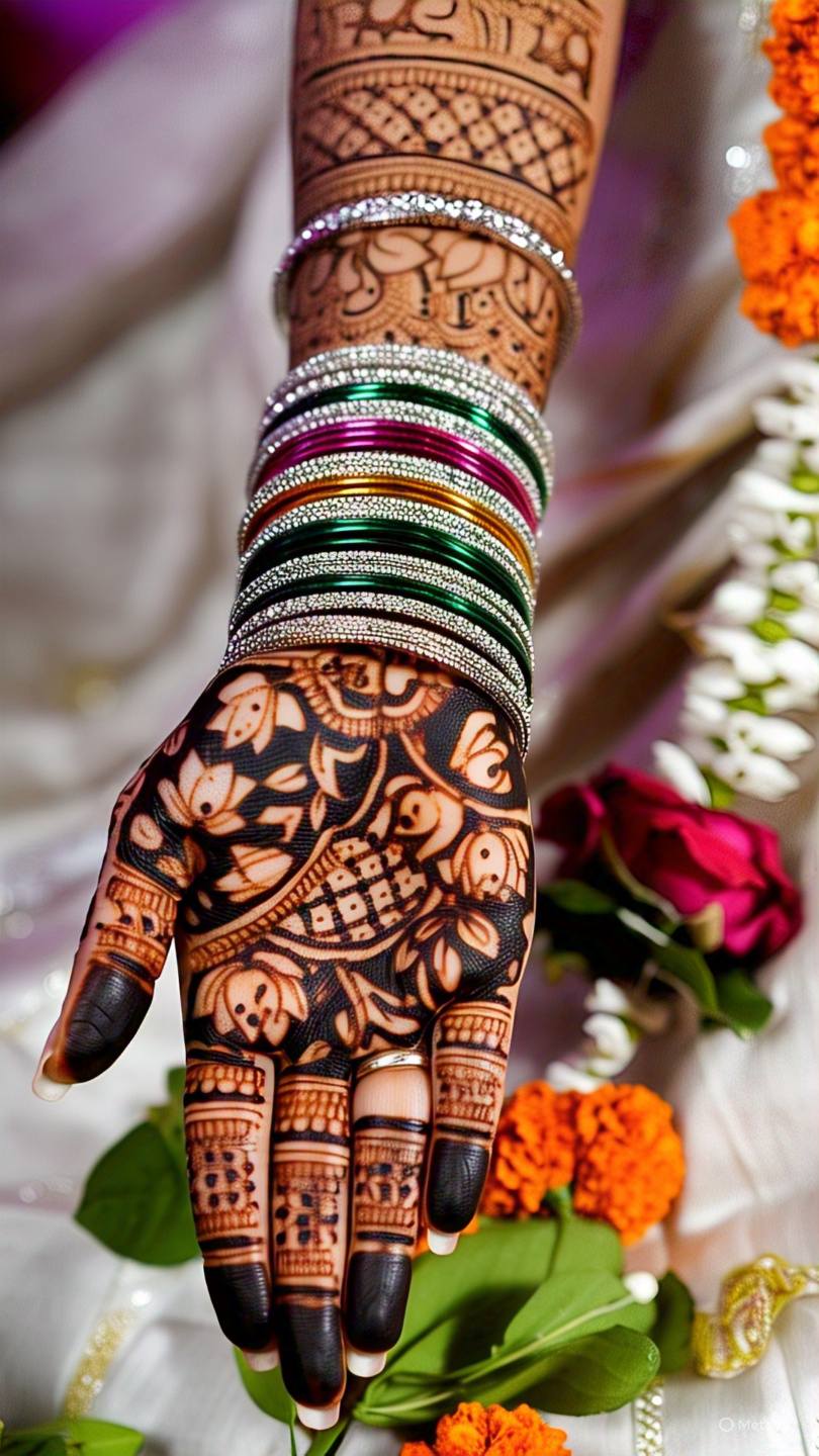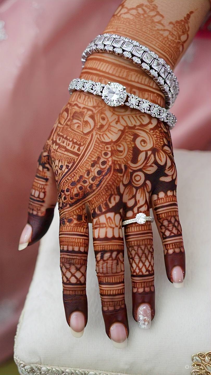 Mandala designs feature circular patterns that start from the center of the palm and expand outward. These symmetrical designs are not only aesthetically pleasing but also hold cultural significance in many traditions.