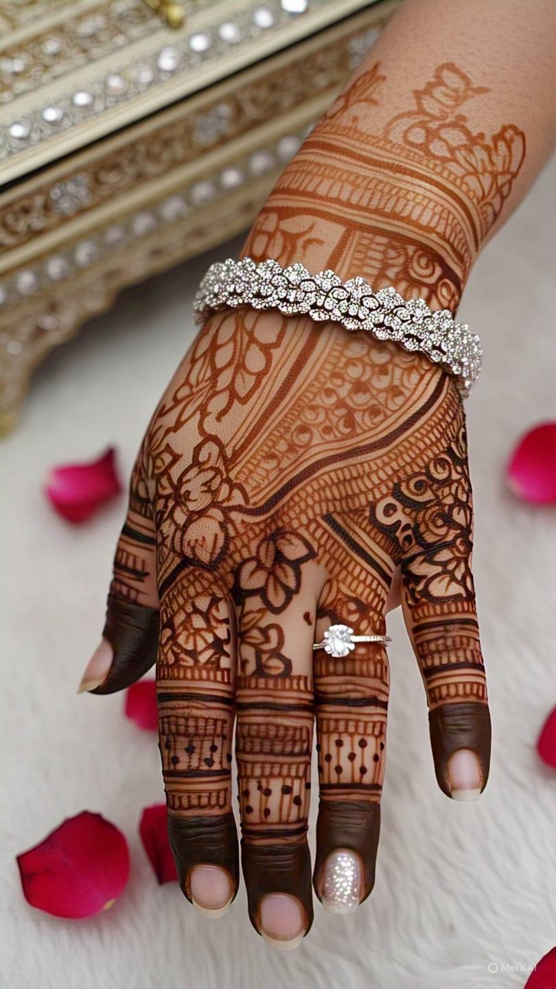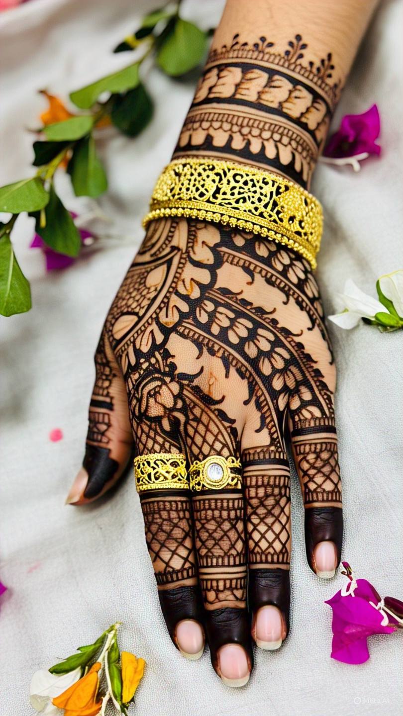 For those who prefer a jewelry-like effect, bracelet mehndi designs are a great option. These patterns create the illusion of wearing a bracelet or bangle, making them a trendy choice for festive occasions.